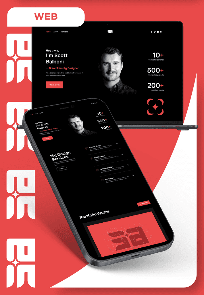The system comes to life through mockups and a responsive portfolio site that reflect the brand’s tone and structure. Together, the assets form a cohesive visual narrative that communicates expertise, creativity, and design sensibility, building trust and recognition across client interactions and self-promotion.
